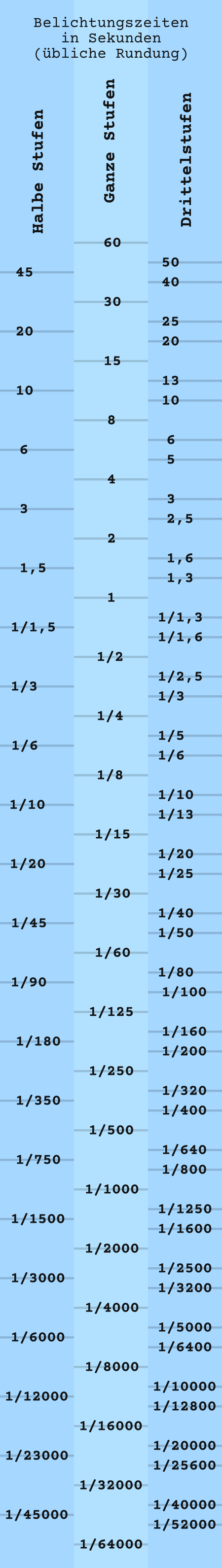 bekommen. Diese Standard-Zeiten halten sich nicht überall genau an die mathematischen Rundungsregeln, aber sie sind im Bereich der Fotografie