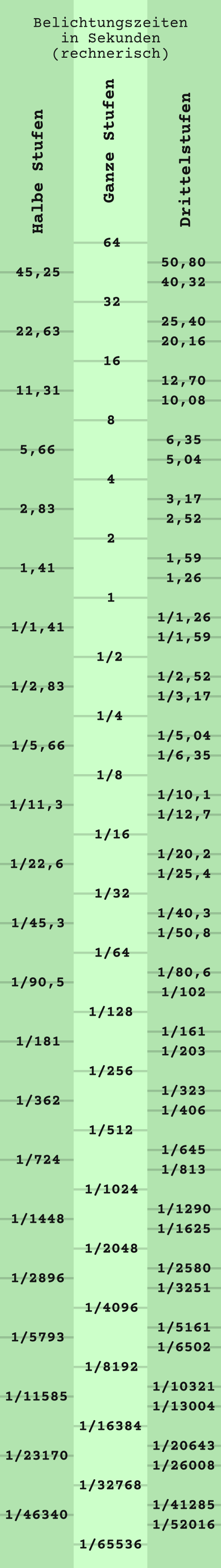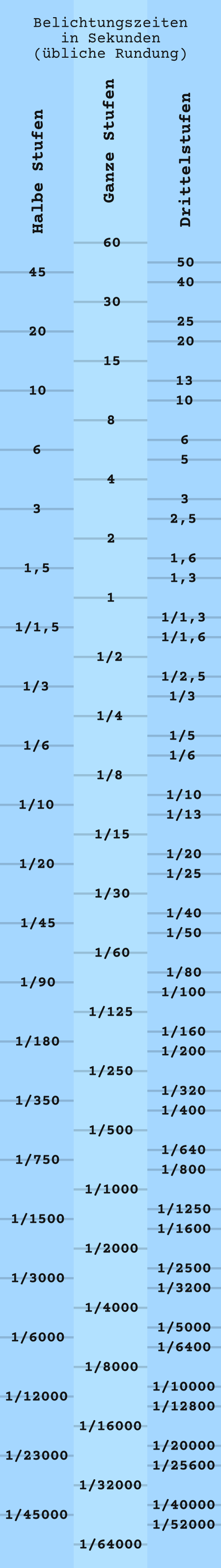 bekommen. Diese Standard-Zeiten halten sich nicht überall genau an die mathematischen Rundungsregeln, aber sie sind im Bereich der Fotografie